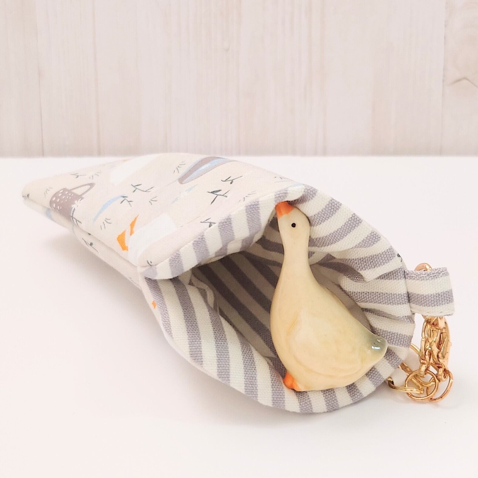 ふかふか素材のメガネケースは、愛らしいアヒル柄のデザインが特徴です。キルト芯を使用しているため、しっかりとした保護力があり、あなたの大切なメガネを優しく包み込んでくれます。可愛いデザインは日常使いにも特別なシーンにもぴったりで、持っているだけで気分が上がります。使い勝手の良いサイズ感で、手軽に持ち運べるのもうれしいポイントです!